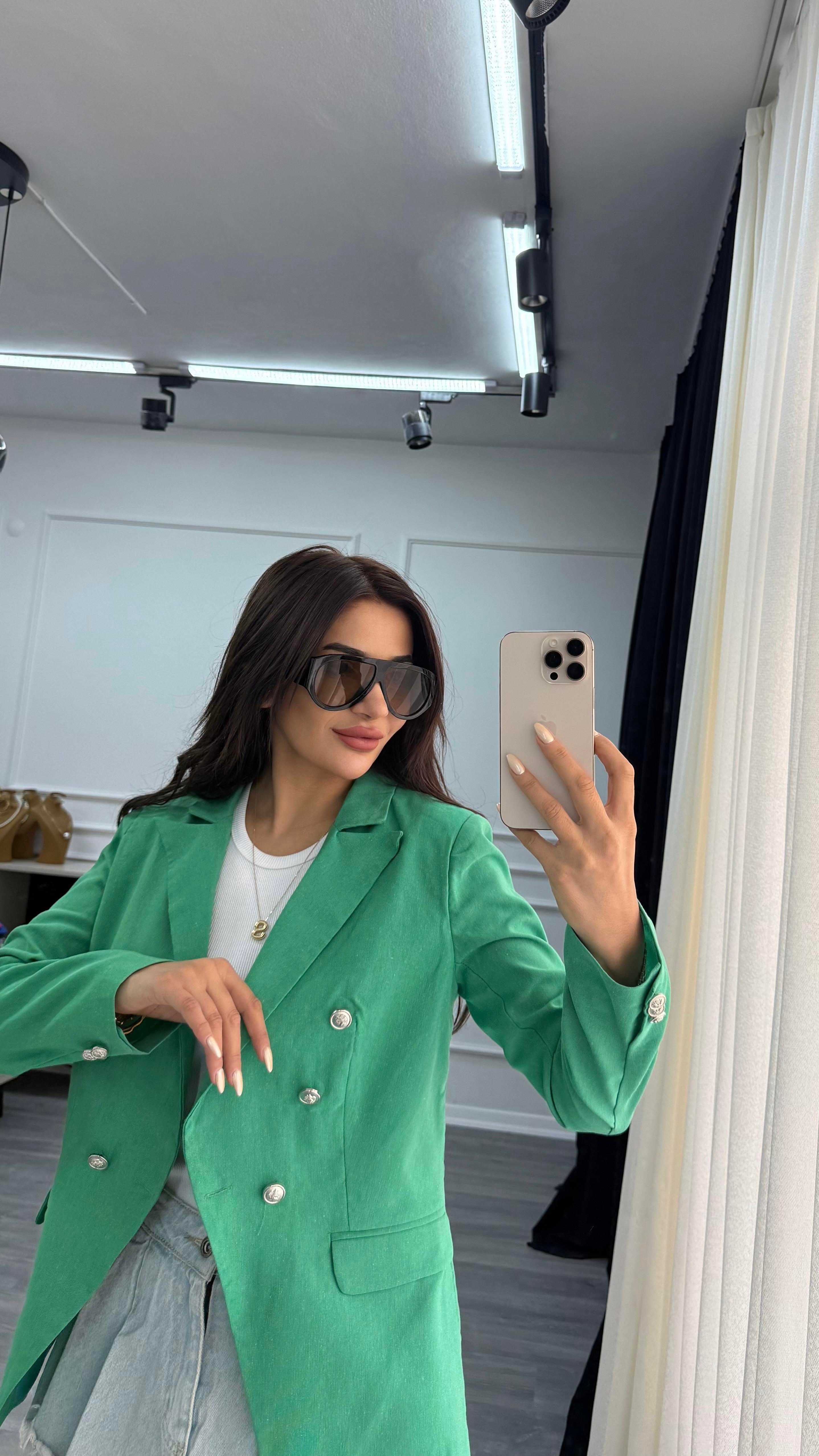 Lüx Kalite Düğme Detaylı Keten Ceket - Yeşil (DVS2390)