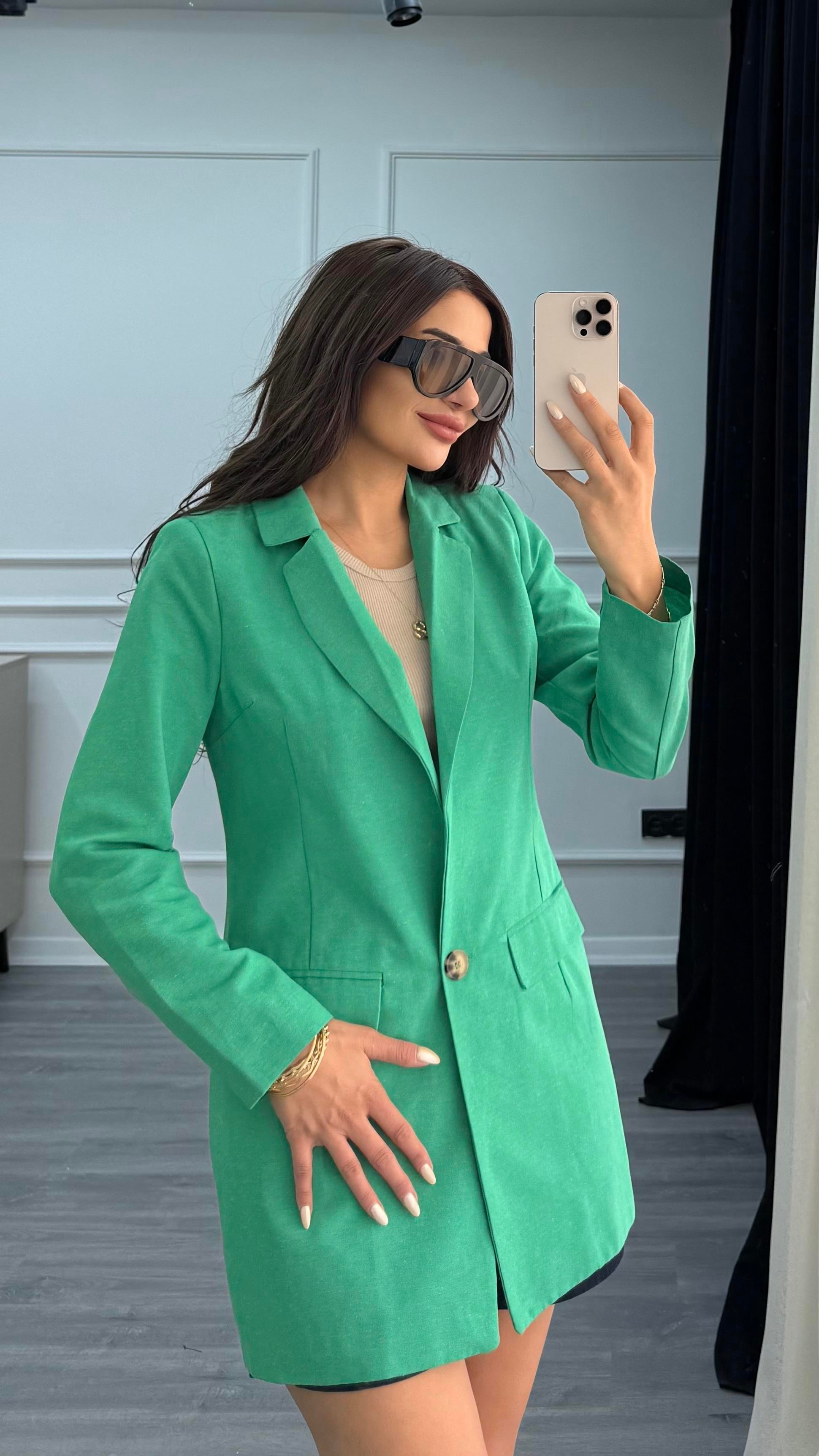 Yeşil Düğmeli Keten Blazer Ceket (DVS4012)