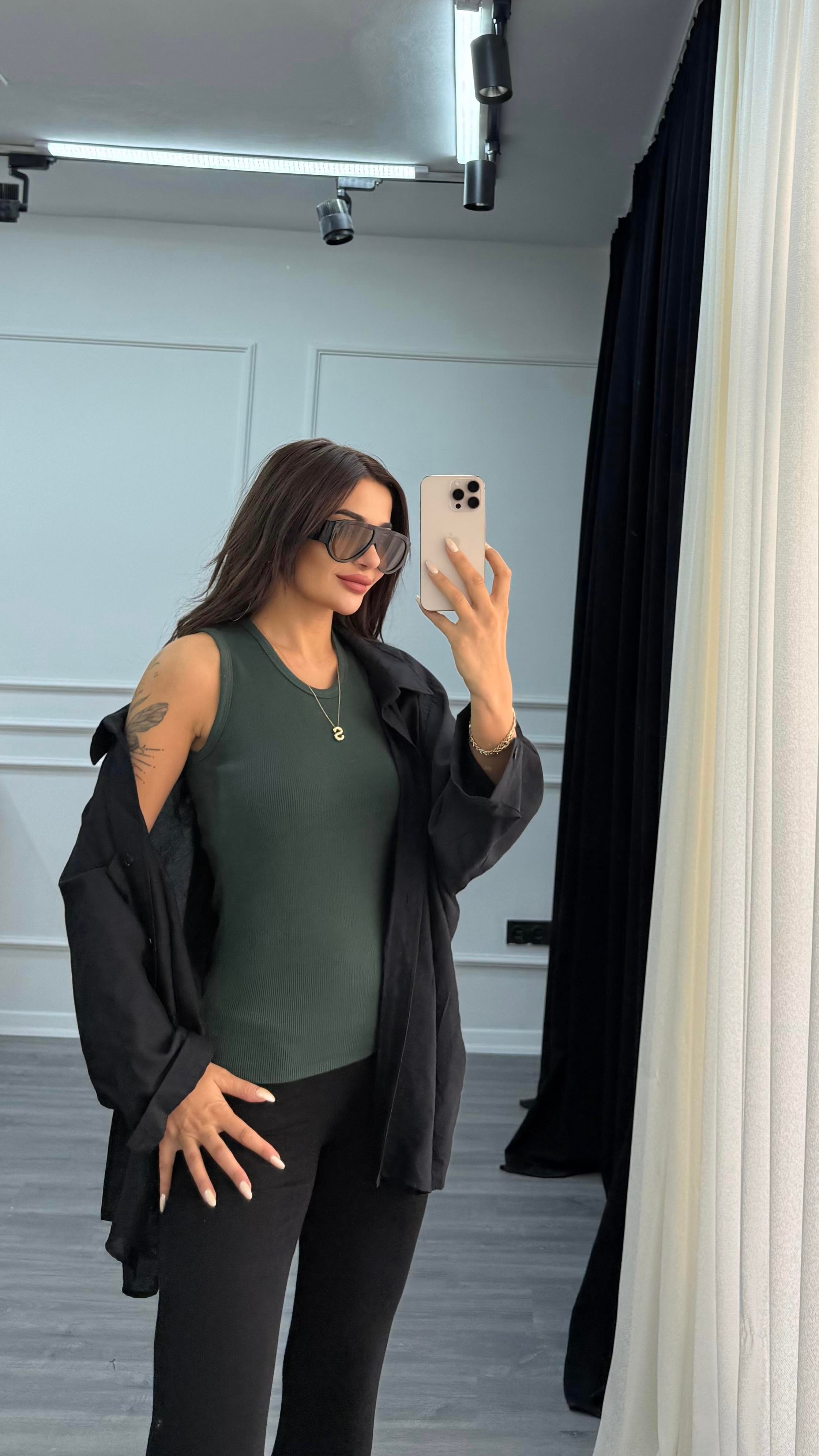 Zümrüt Yeşili Esnek Bisiklet Yaka Kaşkorse Geniş Askılı -Bluz (DVS4013)